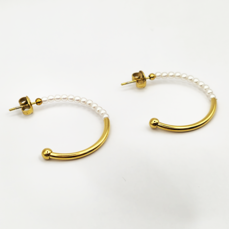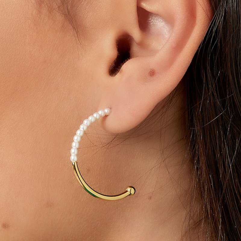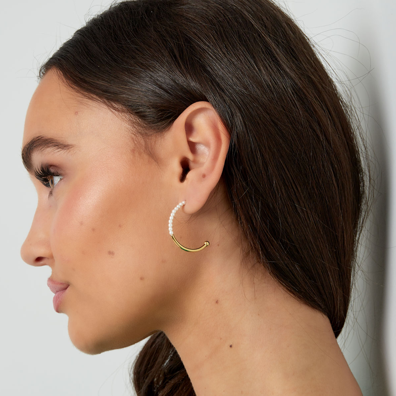 Geef je look een elegante touch met deze goudkleurige hoops met parel en kralen.