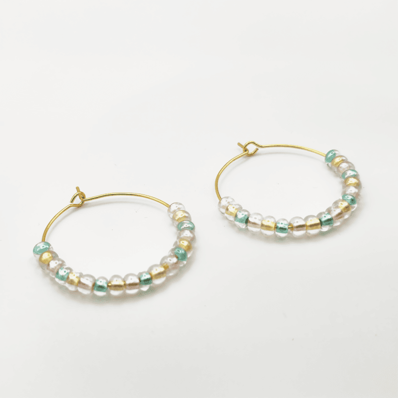 De ronde vorm van de hoops zorgt voor een tijdloos effect, terwijl de kralen een trendy en zomerse twist toevoegen. Dankzij het lichte ontwerp zijn de oorbellen comfortabel om te dragen. Ideaal voor dagelijks gebruik, een festival of een zonnige vakantiedag.