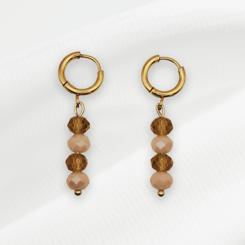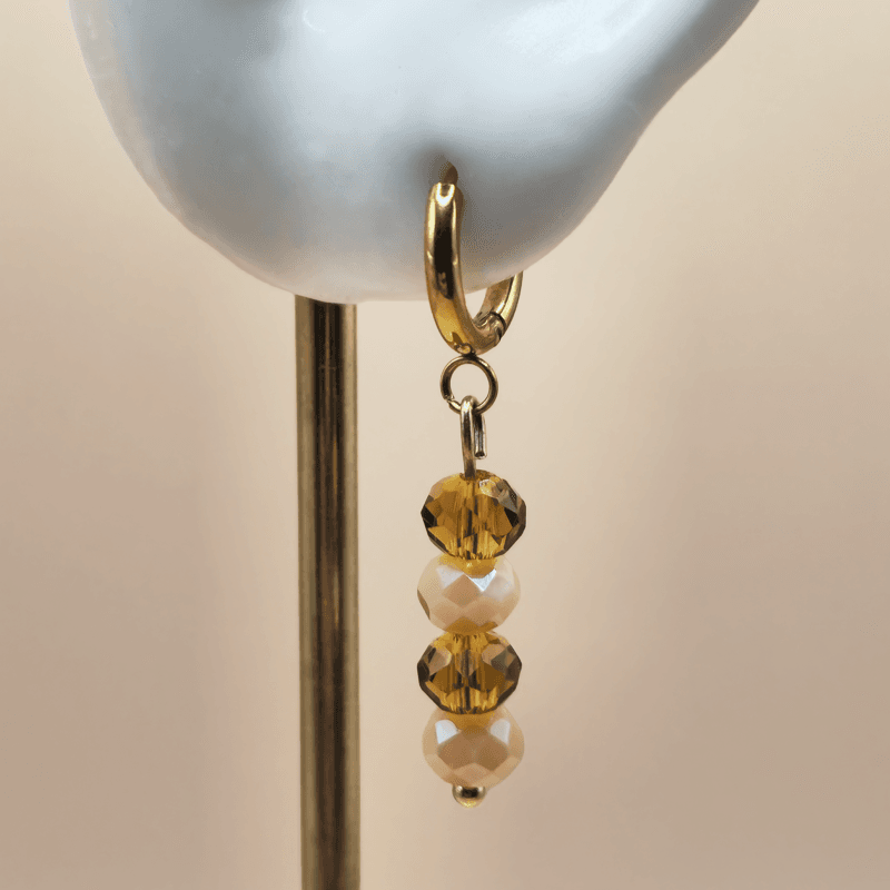 Geef je dagelijkse look een speelse en kleurrijke touch met deze goudkleurige oorringen met 4 kralen. Deze goudkleurige oorbellen combineren goudkleurig roestvrij staal met warm kleurige kralen. Het resultaat is een vrolijke, stijlvolle uitstraling die moeiteloos past bij zowel casual outfits als feestelijke looks.