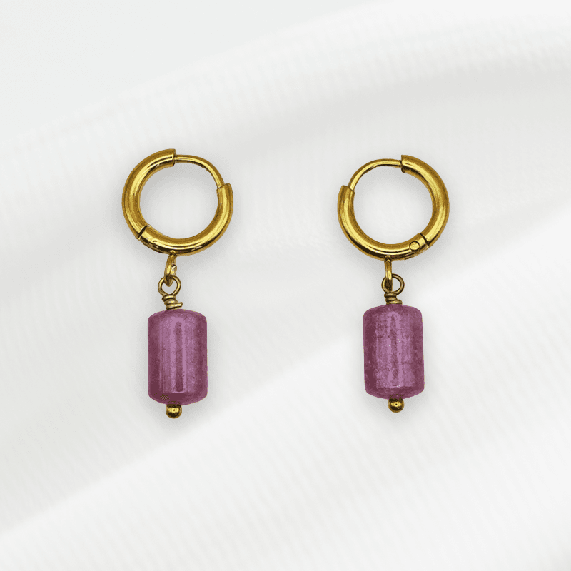 Deze goudkleurige oorringen met roze natuursteen zijn licht van gewicht en comfortabel om de hele dag te dragen. Dankzij de hypoallergene en kleurvaste eigenschappen van het roestvrij staal blijven ze mooi, zelfs bij dagelijks gebruik. Draag ze solo voor een subtiel accent of combineer met andere sieraden voor een elegante, gelaagde look.