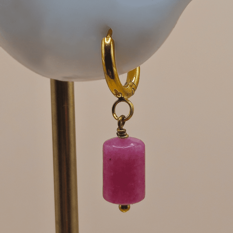 Voeg een zachte en stijlvolle touch toe aan je look met deze goudkleurige oorringen met roze bedel. De cilindervormige hanger in een warme roze tint geeft een elegante, vrouwelijke uitstraling, waardoor deze oorringen perfect passen bij zowel casual outfits als speciale gelegenheden.